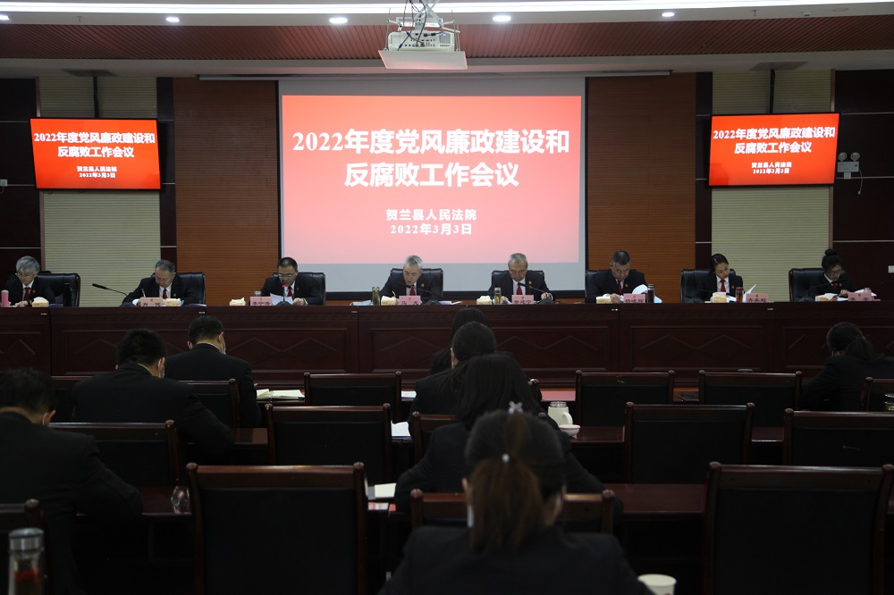 3月3日下午,贺兰县人民法院召开2022年党风廉政建设和反腐败工作会议,传达学习习近平总书记在十九届中央纪委六次全会上的重要讲话精神和中央、区市纪委全会精神,认真落实全国、全区、全市法院党风廉政建设和反腐败工作会议要求,总结回顾过去一年工作,分析研判反腐倡廉形势,安排部署2022年党风廉政建设和反腐败工作。